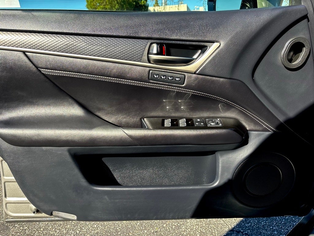 This 2017 Silver Lexus GS 350 RWD is well equipped and includes these features and benefits: Black Leather, 12 Speakers, 4-Wheel Disc Brakes, ABS brakes, Air Conditioning, Alloy wheels, AM/FM radio: SiriusXM, Anti-whiplash front head restraints, Auto High-beam Headlights, Auto tilt-away steering wheel, Auto-dimming door mirrors, Auto-dimming Rear-View mirror, Automatic temperature control, Brake assist, Bumpers: body-color, CD player, Compass, Delay-off headlights, Driver door bin, Driver vanity mirror, Dual front impact airbags, Dual front side impact airbags, DVD-Audio, Electronic Stability Control, Emergency communication system: Safety Connect, Exterior Parking Camera Rear, Four wheel independent suspension, Front anti-roll bar, Front Bucket Seats, Front Center Armrest, Front dual zone A/C, Front reading lights, Fully automatic headlights, Garage door transmitter: HomeLink, Genuine wood console insert, Genuine wood dashboard insert, Genuine wood door panel insert, Heated & Ventilated Front Bucket Seats, Heated door mirrors, Heated front seats, Illuminated entry, Knee airbag, Lane Departure Warning System, Leather Shift Knob, Leather steering wheel, Leather-Trimmed Seats, Low tire pressure warning, Memory seat, Navigation System, Occupant sensing airbag, Outside temperature display, Overhead airbag, Overhead console, Panic alarm, Passenger door bin, Passenger vanity mirror, Power door mirrors, Power driver seat, Power moonroof, Power passenger seat, Power steering, Power windows, Radio data system, Radio: Lexus Premium AM/FM/DVD/HD Audio System, Rain sensing wipers, Rear anti-roll bar, Rear reading lights, Rear seat center armrest, Rear side impact airbag, Rear Window Blind, Rear window defroster, Remote keyless entry, Security system, Speed control, Speed-sensing steering, Speed-Sensitive Wipers, Steering wheel memory, Steering wheel mounted audio controls, Tachometer, Telescoping steering wheel, Tilt steering wheel, Traction control, Trip computer, Turn signal indicator mirrors, Variably intermittent wipers, Ventilated front seats, Voltmeter, and Wheels: 18 x 8 5-Spoke Alloy. Black Leather. CARFAX One-Owner. RWD 8-Speed Automatic with Sequential Shift