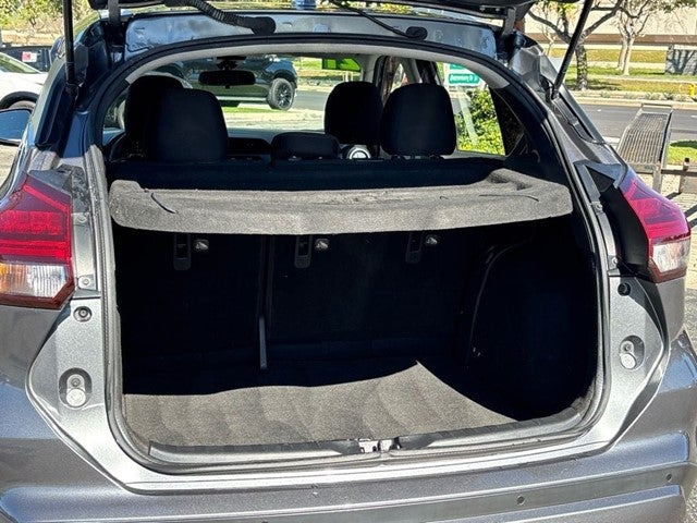This 2021 Gun Metallic Nissan Kicks SV FWD is well equipped and includes these features and benefits: 3.927 Axle Ratio, 4-Wheel Disc Brakes, 6 Speakers, ABS brakes, Air Conditioning, Alloy wheels, AM/FM radio: SiriusXM, Apple CarPlay/Android Auto, Auto High-beam Headlights, Automatic temperature control, Blind Spot Warning, Brake assist, Bumpers: body-color, Carpeted Floor Mats w/Cargo Mat, Cloth Seat Trim, Compass, Driver door bin, Driver vanity mirror, Dual front impact airbags, Dual front side impact airbags, Electronic Stability Control, Front anti-roll bar, Front Bucket Seats, Front Center Armrest, Front reading lights, Front wheel independent suspension, Fully automatic headlights, Heated door mirrors, Illuminated entry, Knee airbag, Low tire pressure warning, Occupant sensing airbag, Outside temperature display, Overhead airbag, Panic alarm, Passenger door bin, Passenger vanity mirror, Power door mirrors, Power steering, Power windows, Radio data system, Radio: AM/FM Audio System, Rear Parking Sensors, Rear reading lights, Rear side impact airbag, Rear window defroster, Rear window wiper, Remote keyless entry, Roof rack: rails only, Speed control, Splash Guards Grain (4 Piece), Split folding rear seat, Sport steering wheel, Steering wheel mounted audio controls, Tachometer, Telescoping steering wheel, Tilt steering wheel, Traction control, Trip computer, Variably intermittent wipers, and Wheels: 17 5-Hole Alloy. CARFAX One-Owner. Clean CARFAX. Recent Arrival! FWD CVT with Xtronic