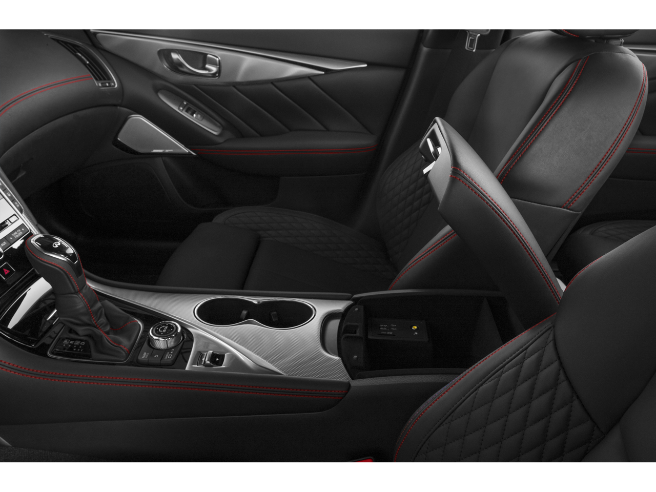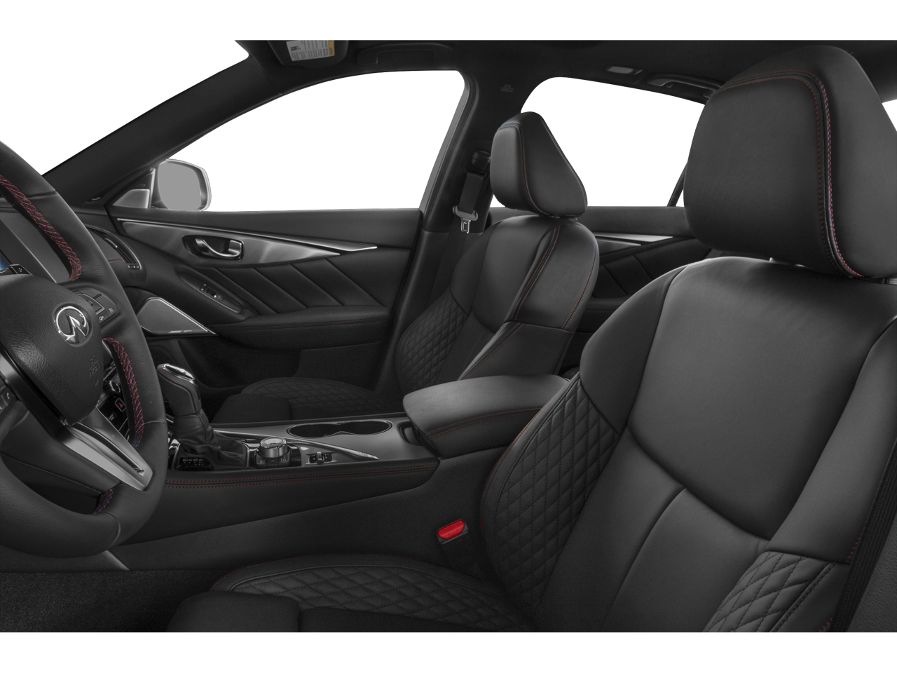 Certified. This 2023 Black Opal Metallic INFINITI Q50 Red Sport 400 AWD is well equipped and includes these features and benefits: All Weather Package (All-Season Floor Mats and Trunk Protector), Black Opal Edition (DISC) (Black Front Grille and Carbon Fiber Rear Spoiler), Cargo Package (Cargo Net, First Aid Kit, Shopping Bag Hooks, and Trunk Mat), INFINITI Certified Pre-Owned Certified, 16 Speakers, 4-Wheel Disc Brakes, ABS brakes, Adaptive suspension, Air Conditioning, Alloy wheels, AM/FM radio: SiriusXM, Auto High-beam Headlights, Auto tilt-away steering wheel, Auto-dimming door mirrors, Auto-dimming Rear-View mirror, Automatic temperature control, Black Opal (DISC), Blind Spot Warning, Brake assist, Bumpers: body-color, CD player, Compass, Delay-off headlights, Driver door bin, Driver vanity mirror, Dual front impact airbags, Dual front side impact airbags, Electronic Stability Control, Emergency communication system: INFINITI Connection, Four wheel independent suspension, Front anti-roll bar, Front Bucket Seats, Front Center Armrest, Front dual zone A/C, Front fog lights, Front reading lights, Fully automatic headlights, Garage door transmitter: HomeLink, Heated door mirrors, Heated front seats, Heated Front Sport Seats, Heated steering wheel, Illuminated entry, INFINITI Radiant Illuminated Kick Plates, INFINITI Radiant Welcome Lighting w/Logo, Leather Shift Knob, Leather steering wheel, Literature Kit, Low tire pressure warning, Memory seat, Navigation system: INFINITI InTouch Navigation, Occupant sensing airbag, Outside temperature display, Overhead airbag, Overhead console, Panic alarm, Passenger door bin, Passenger vanity mirror, Power door mirrors, Power driver seat, Power moonroof, Power passenger seat, Power steering, Power windows, Quilted Semi-Aniline Leather-Appointed Seating, Radio data system, Radio: INFINITI InTouch w/Navigation, Rain sensing wipers, Rear anti-roll bar, Rear reading lights, Rear seat center armrest, Rear USB/Power Delivery Port, Rear window defroster, Remote keyless entry, Security system, Speed control, Speed-Sensitive Wipers, Splash Guards, Split folding rear seat, Steering wheel memory, Steering wheel mounted audio controls, Tachometer, Telescoping steering wheel, Tilt steering wheel, Traction control, Trip computer, Turn signal indicator mirrors, USB Charging Cable Set, Variably intermittent wipers, and Wheels: 19 x 9 w/Exclusive Dark Finish. CARFAX One-Owner. Clean CARFAX. Recent Arrival! AWD 7-Speed Automatic with Overdrive