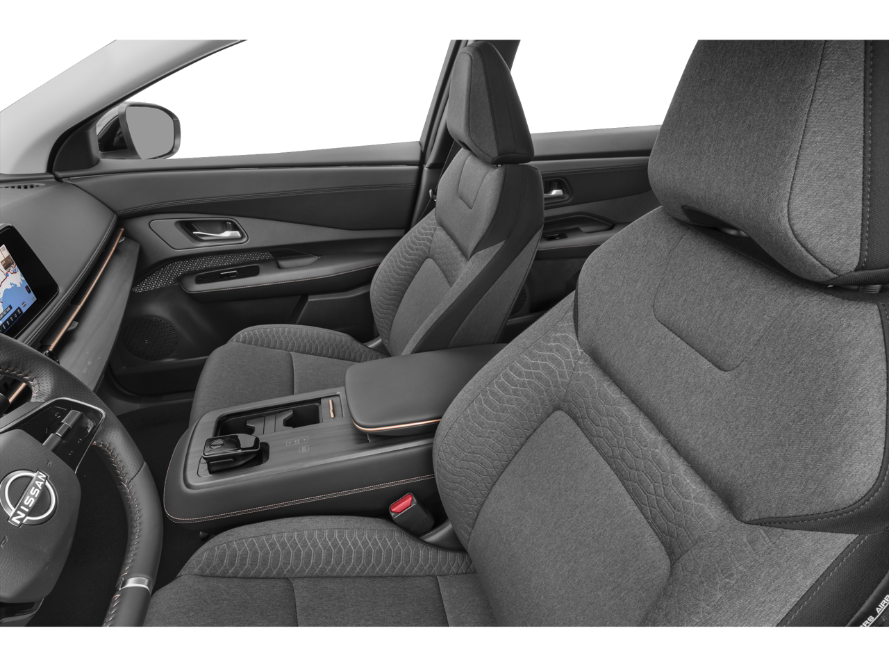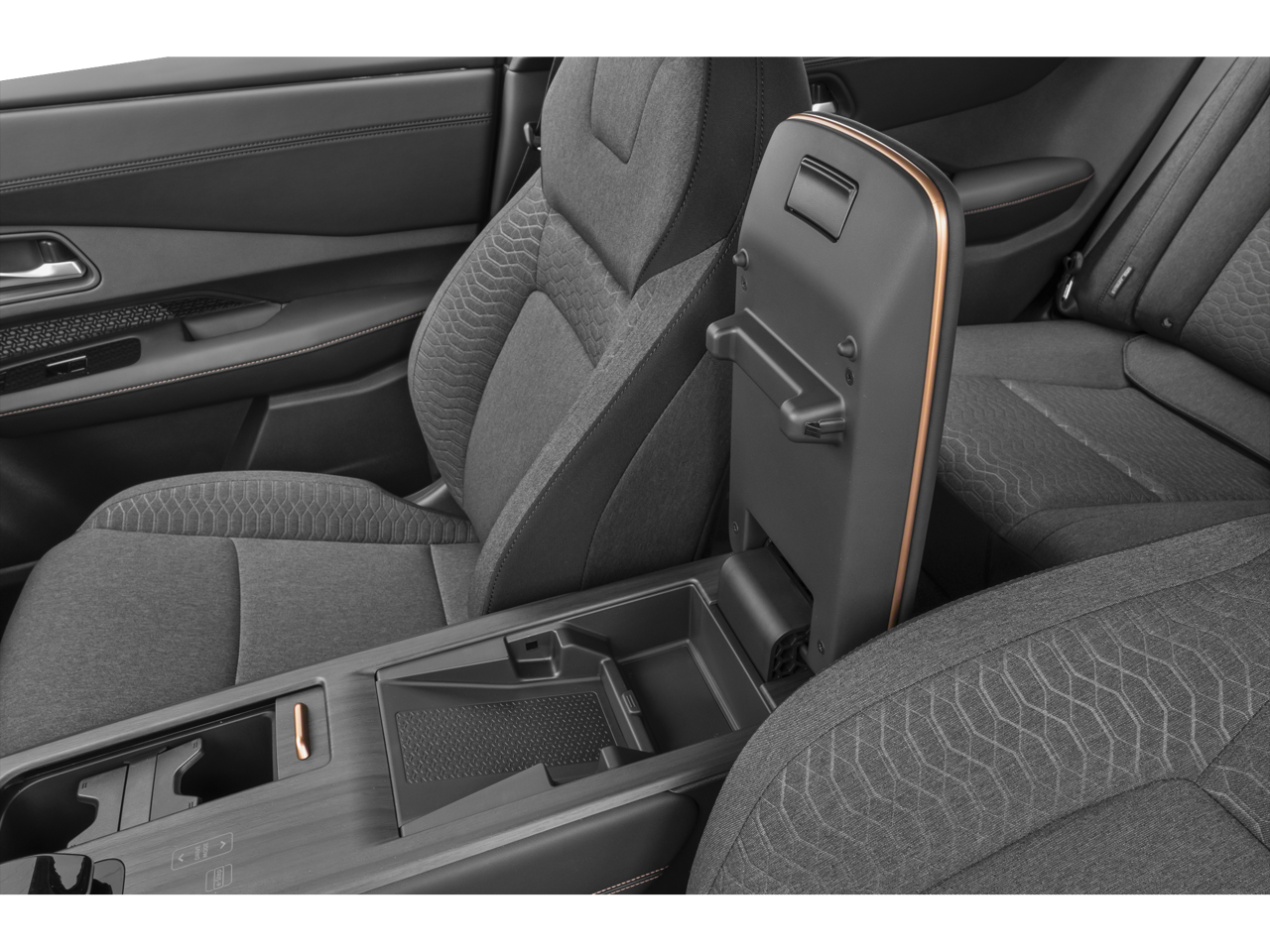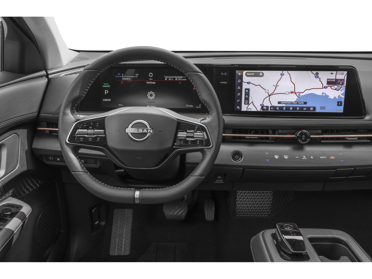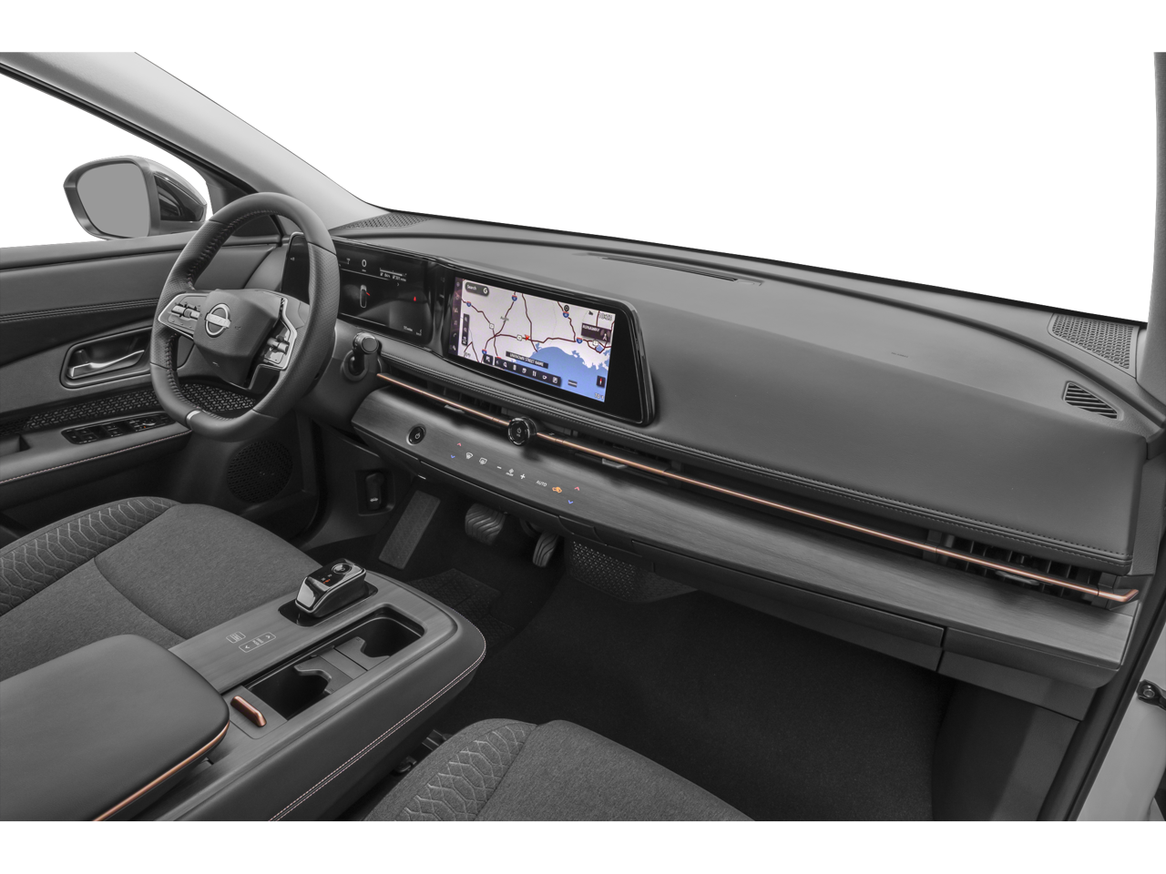 This 2023 Everest White Pearl Tricoat/Black Diamond Pearl Nissan Ariya VENTURE+ FWD is well equipped and includes these features and benefits: 11.090 Final Drive Ratio, 19 Alloy Wheels, 4-Wheel Disc Brakes, 6 Speakers, ABS brakes, Air Conditioning, Alloy wheels, AM/FM radio: SiriusXM, Auto High-beam Headlights, Automatic temperature control, Brake assist, Bumpers: body-color, Cloth Seating Surfaces, Delay-off headlights, Driver door bin, Driver vanity mirror, Dual front impact airbags, Dual front side impact airbags, Electronic Stability Control, Emergency communication system: NissanConnect EV & Services, Four wheel independent suspension, Front anti-roll bar, Front Bucket Seats, Front Center Armrest, Front dual zone A/C, Front reading lights, Heated door mirrors, Illuminated entry, Knee airbag, Leather steering wheel, Low tire pressure warning, Navigation system: Nissan Door to Door Connected Navigation, Occupant sensing airbag, Outside temperature display, Overhead airbag, Panic alarm, Passenger door bin, Passenger vanity mirror, Power door mirrors, Power steering, Power windows, Radio: AM/FM Audio System, Rear anti-roll bar, Rear reading lights, Rear side impact airbag, Rear window defroster, Rear window wiper, Remote keyless entry, Security system, Speed control, Speed-sensing steering, Speed-Sensitive Wipers, Split folding rear seat, Spoiler, Steering wheel mounted audio controls, Telescoping steering wheel, Tilt steering wheel, Traction control, Trip computer, and Variably intermittent wipers. CARFAX One-Owner. Clean CARFAX. Recent Arrival! FWD CVT