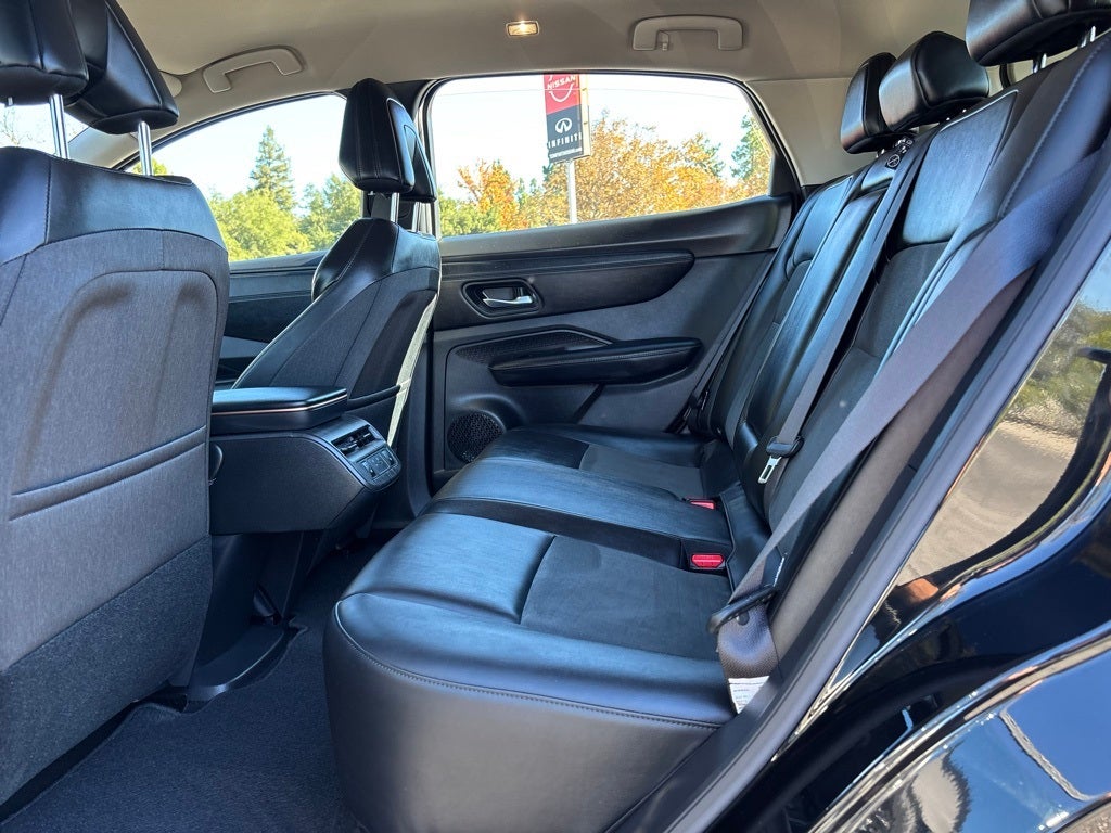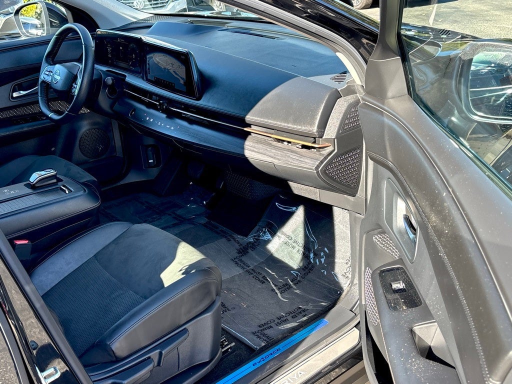 Certified. This 2024 Black Diamond Pearl Nissan Ariya ENGAGE e-4ORCE AWD is well equipped and includes these features and benefits: EV Certified Certified, 19 Alloy Wheels, 4-Wheel Disc Brakes, 6 Speakers, ABS brakes, Air Conditioning, Alloy wheels, AM/FM radio: SiriusXM, Auto High-beam Headlights, Automatic temperature control, Black Painted Splash Guards, Brake assist, Bumpers: body-color, Carpeted Floor Mats & First Aid Kit, Delay-off headlights, Driver door bin, Driver vanity mirror, Dual front impact airbags, Dual front side impact airbags, Electronic Stability Control, Emergency communication system: NissanConnect EV & Services, Four wheel independent suspension, Front anti-roll bar, Front Bucket Seats, Front Center Armrest, Front dual zone A/C, Front reading lights, Heads-Up Display, Heated door mirrors, Heated Front Bucket Seats, Heated front seats, Heated rear seats, Heated steering wheel, Illuminated entry, Illuminated Kick Plates, Knee airbag, Leather steering wheel, Leatherette Seating Surfaces, Low tire pressure warning, Memory seat, Navigation system: Nissan Door to Door Connected Navigation, Occupant sensing airbag, Outside temperature display, Overhead airbag, Panic alarm, Passenger door bin, Passenger vanity mirror, Power door mirrors, Power driver seat, Power steering, Power windows, Radio: AM/FM Audio System, Rear anti-roll bar, Rear reading lights, Rear seat center armrest, Rear side impact airbag, Rear window defroster, Rear window wiper, Remote keyless entry, Security system, Speed control, Speed-sensing steering, Speed-Sensitive Wipers, Split folding rear seat, Spoiler, Steering wheel mounted audio controls, Telescoping steering wheel, Tilt steering wheel, Traction control, Trip computer, and Variably intermittent wipers. CARFAX One-Owner. Clean CARFAX. Odometer is 4100 miles below market average! AWD CVT