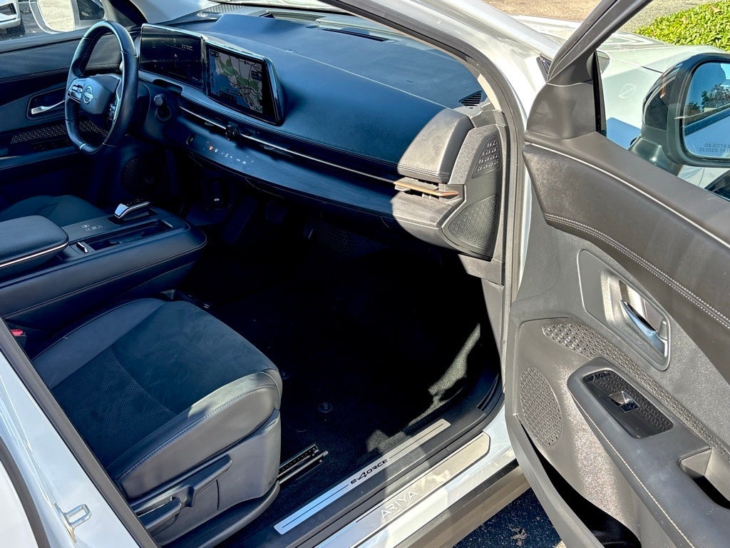 Certified. This 2024 Everest White Pearl Tricoat Nissan Ariya ENGAGE e-4ORCE AWD is well equipped and includes these features and benefits: EV Certified Certified, 19 Alloy Wheels, 4-Wheel Disc Brakes, 6 Speakers, ABS brakes, Air Conditioning, Alloy wheels, AM/FM radio: SiriusXM, Auto High-beam Headlights, Automatic temperature control, Brake assist, Bumpers: body-color, Carpeted Floor Mats & First Aid Kit, Delay-off headlights, Driver door bin, Driver vanity mirror, Dual front impact airbags, Dual front side impact airbags, Electronic Stability Control, Emergency communication system: NissanConnect EV & Services, Four wheel independent suspension, Front anti-roll bar, Front Bucket Seats, Front Center Armrest, Front dual zone A/C, Front reading lights, Heads-Up Display, Heated door mirrors, Heated Front Bucket Seats, Heated front seats, Heated rear seats, Heated steering wheel, Illuminated entry, Illuminated Kick Plates, Knee airbag, Leather steering wheel, Leatherette Seating Surfaces, Low tire pressure warning, Memory seat, Navigation system: Nissan Door to Door Connected Navigation, Nissan USB Charging Cable Set, Occupant sensing airbag, Outside temperature display, Overhead airbag, Panic alarm, Passenger door bin, Passenger vanity mirror, Power door mirrors, Power driver seat, Power steering, Power windows, Radio: AM/FM Audio System, Rear anti-roll bar, Rear reading lights, Rear seat center armrest, Rear side impact airbag, Rear window defroster, Rear window wiper, Remote keyless entry, Security system, Speed control, Speed-sensing steering, Speed-Sensitive Wipers, Split folding rear seat, Spoiler, Steering wheel mounted audio controls, Telescoping steering wheel, Tilt steering wheel, Traction control, Trip computer, and Variably intermittent wipers. CARFAX One-Owner. Clean CARFAX. AWD CVT