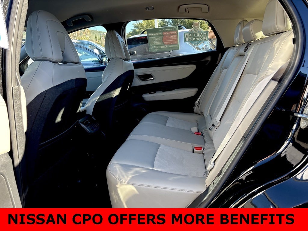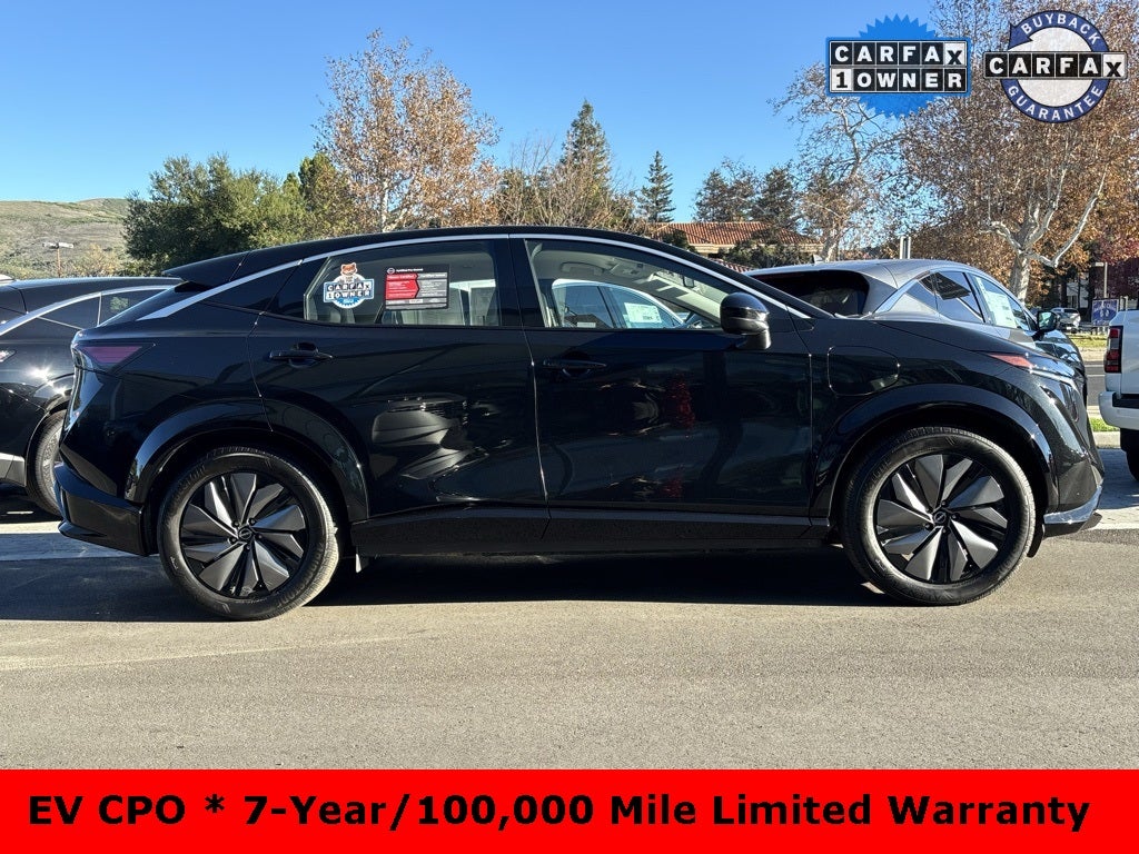 Certified. This 2024 Black Diamond Pearl Nissan Ariya ENGAGE FWD is well equipped and includes these features and benefits: EV Certified Certified, 19 Alloy Wheels, 4-Wheel Disc Brakes, 6 Speakers, ABS brakes, Air Conditioning, Alloy wheels, AM/FM radio: SiriusXM, Auto High-beam Headlights, Automatic temperature control, Brake assist, Bumpers: body-color, Carpeted Floor Mats & First Aid Kit, Delay-off headlights, Driver door bin, Driver vanity mirror, Dual front impact airbags, Dual front side impact airbags, Electronic Stability Control, Emergency communication system: NissanConnect EV & Services, Four wheel independent suspension, Front anti-roll bar, Front Bucket Seats, Front Center Armrest, Front dual zone A/C, Front reading lights, Heads-Up Display, Heated door mirrors, Heated Front Bucket Seats, Heated front seats, Heated rear seats, Heated steering wheel, Illuminated entry, Knee airbag, Leather steering wheel, Leatherette Seating Surfaces, Low tire pressure warning, Memory seat, Navigation system: Nissan Door to Door Connected Navigation, Occupant sensing airbag, Outside temperature display, Overhead airbag, Panic alarm, Passenger door bin, Passenger vanity mirror, Power door mirrors, Power driver seat, Power steering, Power windows, Radio: AM/FM Audio System, Rear anti-roll bar, Rear reading lights, Rear seat center armrest, Rear side impact airbag, Rear window defroster, Rear window wiper, Remote keyless entry, Security system, Speed control, Speed-sensing steering, Speed-Sensitive Wipers, Split folding rear seat, Spoiler, Steering wheel mounted audio controls, Telescoping steering wheel, Tilt steering wheel, Traction control, Trip computer, and Variably intermittent wipers. CARFAX One-Owner. Clean CARFAX. Recent Arrival! FWD CVT