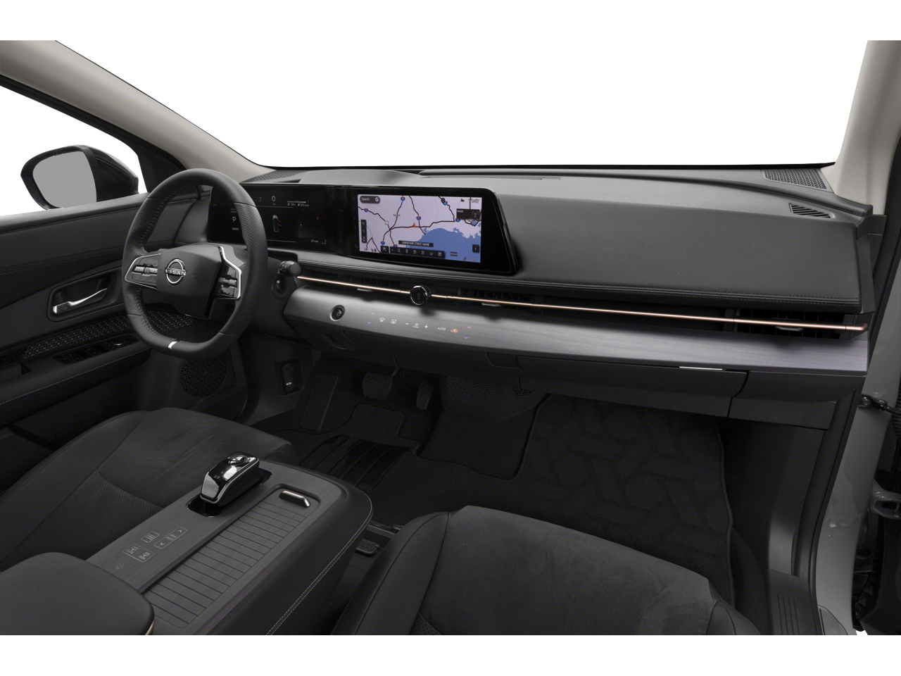 This 2024 Everest White Pearl Tricoat Nissan Ariya EVOLVE+ FWD is well equipped and includes these features and benefits: 11.090 Final Drive Ratio, 19 Alloy Wheels, 4-Wheel Disc Brakes, 6 Speakers, ABS brakes, Air Conditioning, Alloy wheels, AM/FM radio: SiriusXM, Auto High-beam Headlights, Automatic temperature control, Brake assist, Bumpers: body-color, Carpeted Floor Mats & First Aid Kit, Delay-off headlights, Driver door bin, Driver vanity mirror, Dual front impact airbags, Dual front side impact airbags, Electronic Stability Control, Emergency communication system: NissanConnect EV & Services, Four wheel independent suspension, Front anti-roll bar, Front Bucket Seats, Front Center Armrest, Front dual zone A/C, Front fog lights, Front reading lights, Garage door transmitter: HomeLink, Heads-Up Display, Heated door mirrors, Heated Front Bucket Seats, Heated front seats, Heated rear seats, Heated steering wheel, Illuminated entry, Illuminated Kick Plates, Knee airbag, Leather steering wheel, Leatherette Seating Surfaces, Low tire pressure warning, Memory seat, Navigation system: Nissan Door to Door Connected Navigation, Nissan USB Charging Cable Set, Occupant sensing airbag, Outside temperature display, Overhead airbag, Panic alarm, Passenger door bin, Passenger vanity mirror, Power door mirrors, Power driver seat, Power Liftgate, Power moonroof, Power passenger seat, Power steering, Power windows, Radio: AM/FM Audio System, Rain sensing wipers, Rear anti-roll bar, Rear reading lights, Rear seat center armrest, Rear side impact airbag, Rear window defroster, Rear window wiper, Remote keyless entry, Security system, Speed control, Speed-sensing steering, Speed-Sensitive Wipers, Split folding rear seat, Spoiler, Steering wheel mounted audio controls, Telescoping steering wheel, Tilt steering wheel, Traction control, Trip computer, and Variably intermittent wipers. CARFAX One-Owner. Clean CARFAX. Recent Arrival! FWD CVT