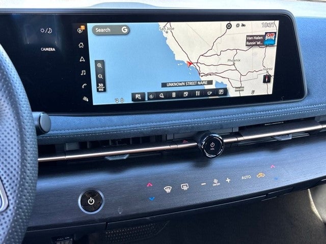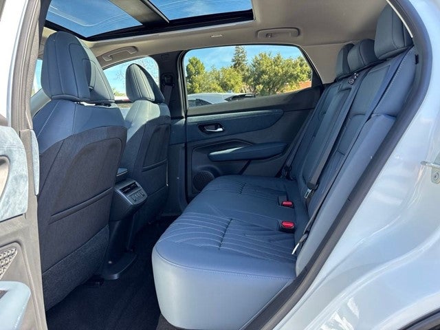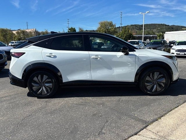 Certified. This 2025 Everest White Pearl Tricoat/Black Diamond Pearl Nissan Ariya PLATINUM+ e-4ORCE AWD is well equipped and includes these features and benefits: EV Certified Certified, 10 Speakers, 4-Wheel Disc Brakes, ABS brakes, Air Conditioning, Alloy wheels, AM/FM radio: SiriusXM, Auto High-beam Headlights, Auto-dimming Rear-View mirror, Automatic temperature control, Brake assist, Bumpers: body-color, Carpeted Floor Mats & First Aid Kit, Delay-off headlights, Driver door bin, Driver vanity mirror, Dual front impact airbags, Dual front side impact airbags, Electronic Stability Control, Emergency communication system: NissanConnect EV & Services, Four wheel independent suspension, Front anti-roll bar, Front Bucket Seats, Front Center Armrest, Front dual zone A/C, Front fog lights, Front reading lights, Garage door transmitter: HomeLink, Heads-Up Display, Heated & Cooled Front Bucket Seats, Heated door mirrors, Heated front seats, Heated rear seats, Heated steering wheel, Illuminated entry, Illuminated Kick Plates, Knee airbag, Leather steering wheel, Low tire pressure warning, Memory seat, NACS Charging Adapter, Nappa Leather Seating Surfaces, Navigation system: Nissan Door to Door Connected Navigation, Occupant sensing airbag, Outside temperature display, Overhead airbag, Panic alarm, Passenger door bin, Passenger vanity mirror, Power door mirrors, Power driver seat, Power Liftgate, Power moonroof, Power passenger seat, Power steering, Power windows, Premium Paint w/Two-Tone, Radio: NissanConnect EV w/Navigation, Rain sensing wipers, Rear anti-roll bar, Rear reading lights, Rear seat center armrest, Rear side impact airbag, Rear window defroster, Rear window wiper, Remote keyless entry, Security system, Speed control, Speed-sensing steering, Speed-Sensitive Wipers, Split folding rear seat, Spoiler, Steering wheel memory, Steering wheel mounted audio controls, Telescoping steering wheel, Tilt steering wheel, Traction control, Trip computer, Turn signal indicator mirrors, Variably intermittent wipers, and Ventilated front seats. CARFAX One-Owner. Clean CARFAX. Recent Arrival! Odometer is 6692 miles below market average! AWD CVT