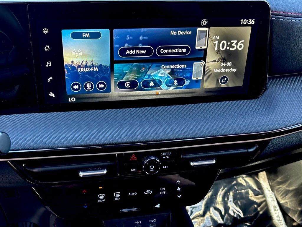 - Radio: AM/FM Audio System -inc: 12.3 color touchscreen display w/6 speakers, Bluetooth® hands-free phone system, streaming audio via Bluetooth®, audio and Bluetooth® steering wheel switches, USB C (data and charge) (front), rear USB type C port (2), NissanConnect featuring wireless Apple CarPlay, wireless Android Auto, Siri eyes free, SiriusXM satellite radio w/advanced auto features and hands-free text messaging assistant